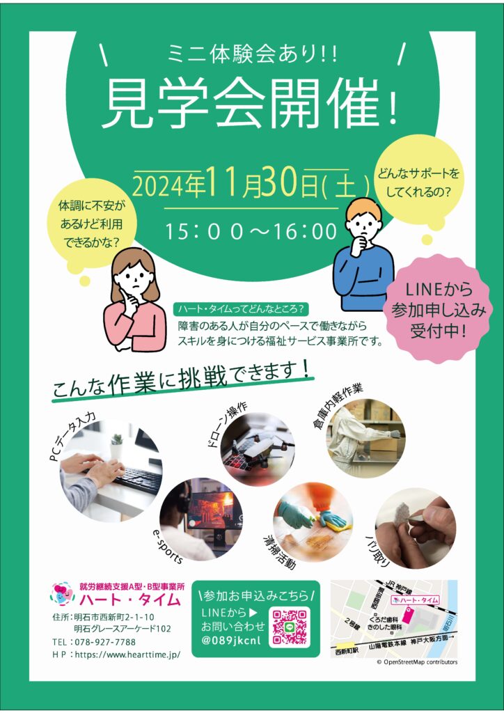 私たちハート・タイムは、明石市の西新町で就労継続支援を行っています